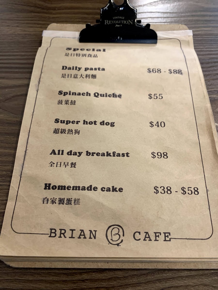 BRIAN CAFE Menu